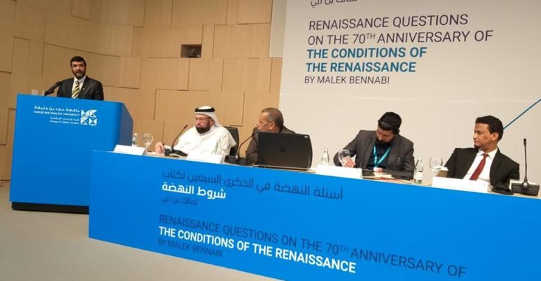 شارك مركز ابن غازي للابحاث والدراسات الاستراتيجية بورقة عن “فلسفة التاريخ عند مالك بن نبي: من الرؤية البطولية إلى الرؤية الإنسانية” قدمها الدكتور إدريس مقبول في المؤتمر الدولي بمناسبة مرور سبعين سنة عن “شروط النهضة” لمالك بن نبي بجامعة حمد بن خليفة بالدوحة.